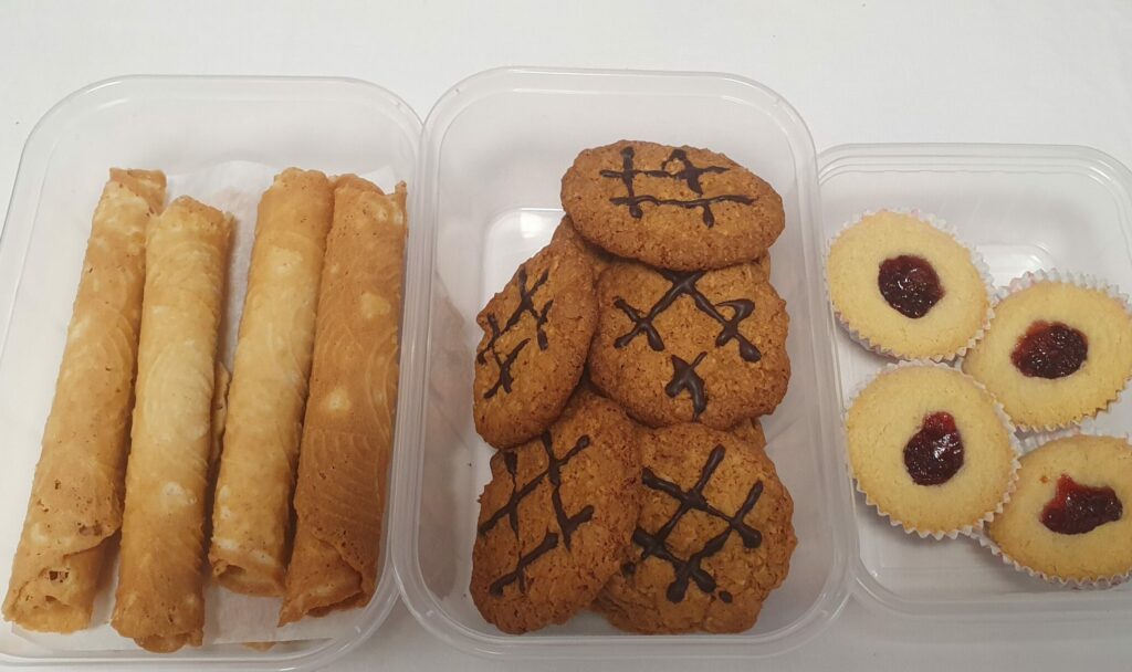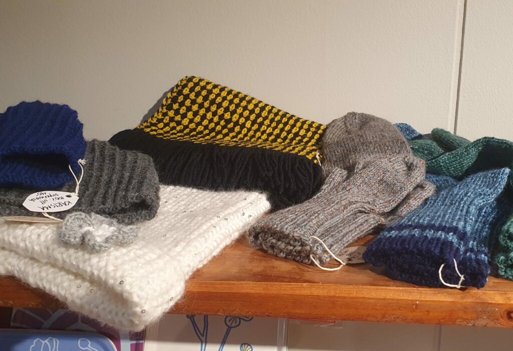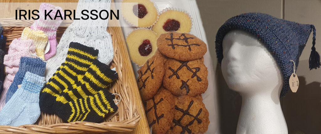 Jag tycker om att ”ha något i händerna” så just nu har det resulterat i stickade produkter, sockar, mössor, handledsvärmare, barbiekläder mm samt bakade kakor av olika slag.