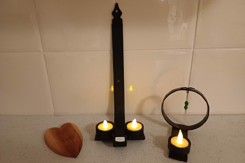 Rönn är ett av mina favoritträslag. Gör även ljusstakar av gamla gångjärn.